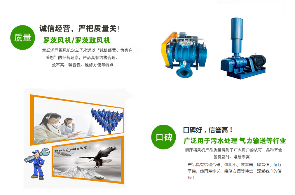 濟(jì)南潤廳福環(huán)保設(shè)備有限公司位于素有“小泉城”之稱的山東省濟(jì)南章丘區(qū),本地區(qū)也是知名的羅茨風(fēng)機(jī)供應(yīng)基地。我們主營產(chǎn)品有各種型號(hào)羅茨鼓風(fēng)機(jī)、回轉(zhuǎn)式風(fēng)機(jī)、羅茨增壓泵、空氣懸浮風(fēng)機(jī)、螺桿空壓機(jī)、、螺桿鼓風(fēng)機(jī)、真空泵等各型號(hào)氣力輸送設(shè)備以及各種熔噴機(jī)、熔噴布生產(chǎn)線設(shè)備。本單位供應(yīng)的風(fēng)機(jī)具有結(jié)構(gòu)合理、體積小、噪音低、運(yùn)轉(zhuǎn)平穩(wěn)、維修方便等特點(diǎn)。設(shè)備輸出空氣清潔,不含油質(zhì)和灰塵,機(jī)身密封結(jié)構(gòu)合理,從而輸出空氣清潔。由于近幾年的環(huán)保行業(yè)大力發(fā)展,使得羅茨鼓風(fēng)機(jī)使用更加廣泛,我們經(jīng)營設(shè)備已被廣泛用于污水處理、氣力輸送、礦山、化工、冶煉、建材、電力、面粉、糧食加工、噴砂、真空包裝和水產(chǎn)養(yǎng)殖等行業(yè)。
